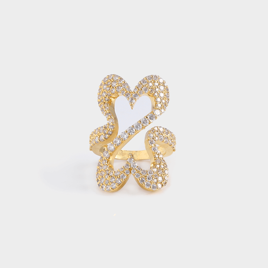 The ultimate representation of love, the infinity heart ring set in sparkling white cubic zirconia, handcrafted in sterling silver and covered in yellow gold vermeil.
