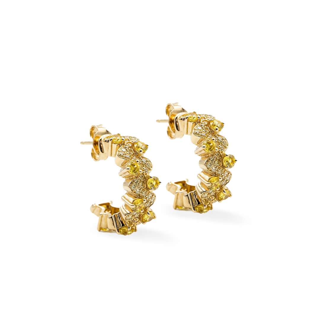 Crafted in sterling silver with gold vermeil, these heartbeat-shaped earrings feature vibrant tourmaline stones—blending modern charm with timeless elegance.