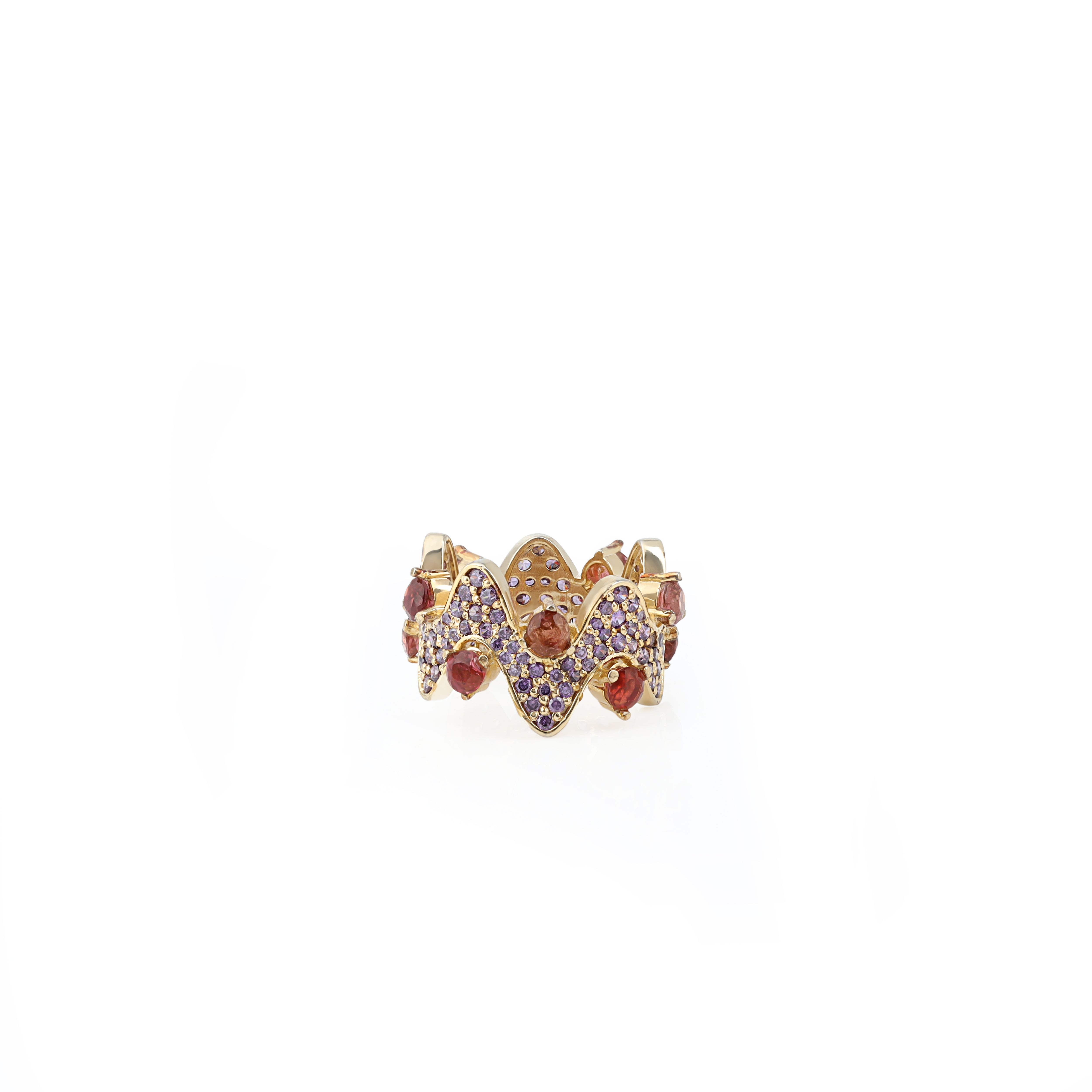 Crafted with a stunning heartbeat design, this sterling silver ring is finished with a luxurious gold vermeil. Adorned with rich tourmaline stones, this unique piece effortlessly blends elegance and artistry, making it an essential addition to your jewellery collection.