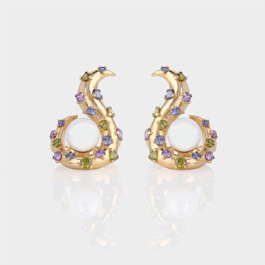 The Serpent, symbolizing eternal love, inspires this Snake Me Up ear cuff. Handcrafted in sterling silver with gold vermeil, it features vibrant cubic zirconias and a freshwater pearl. Wear it as a cuff or a dangling pair—available as a single or a set.