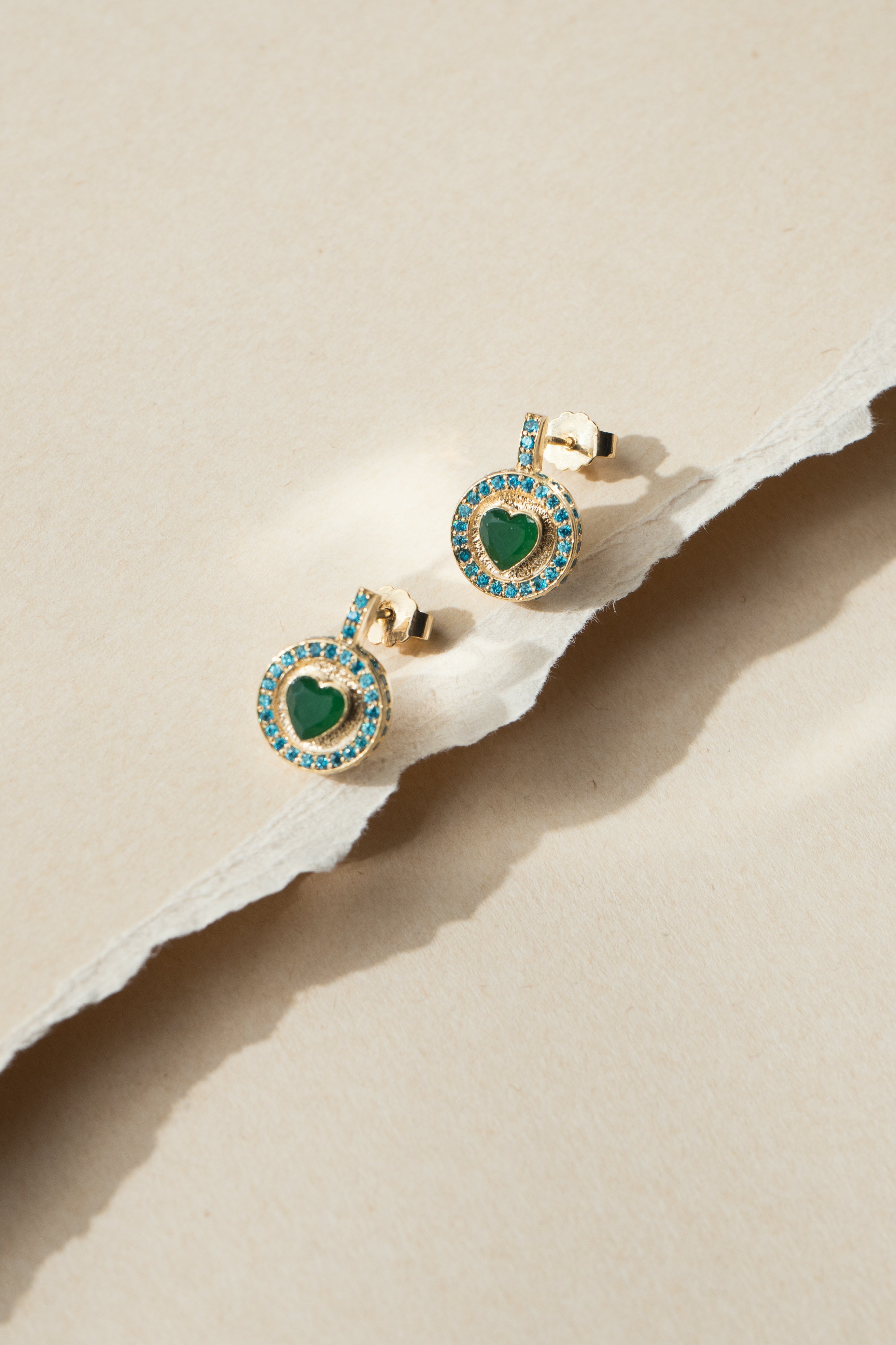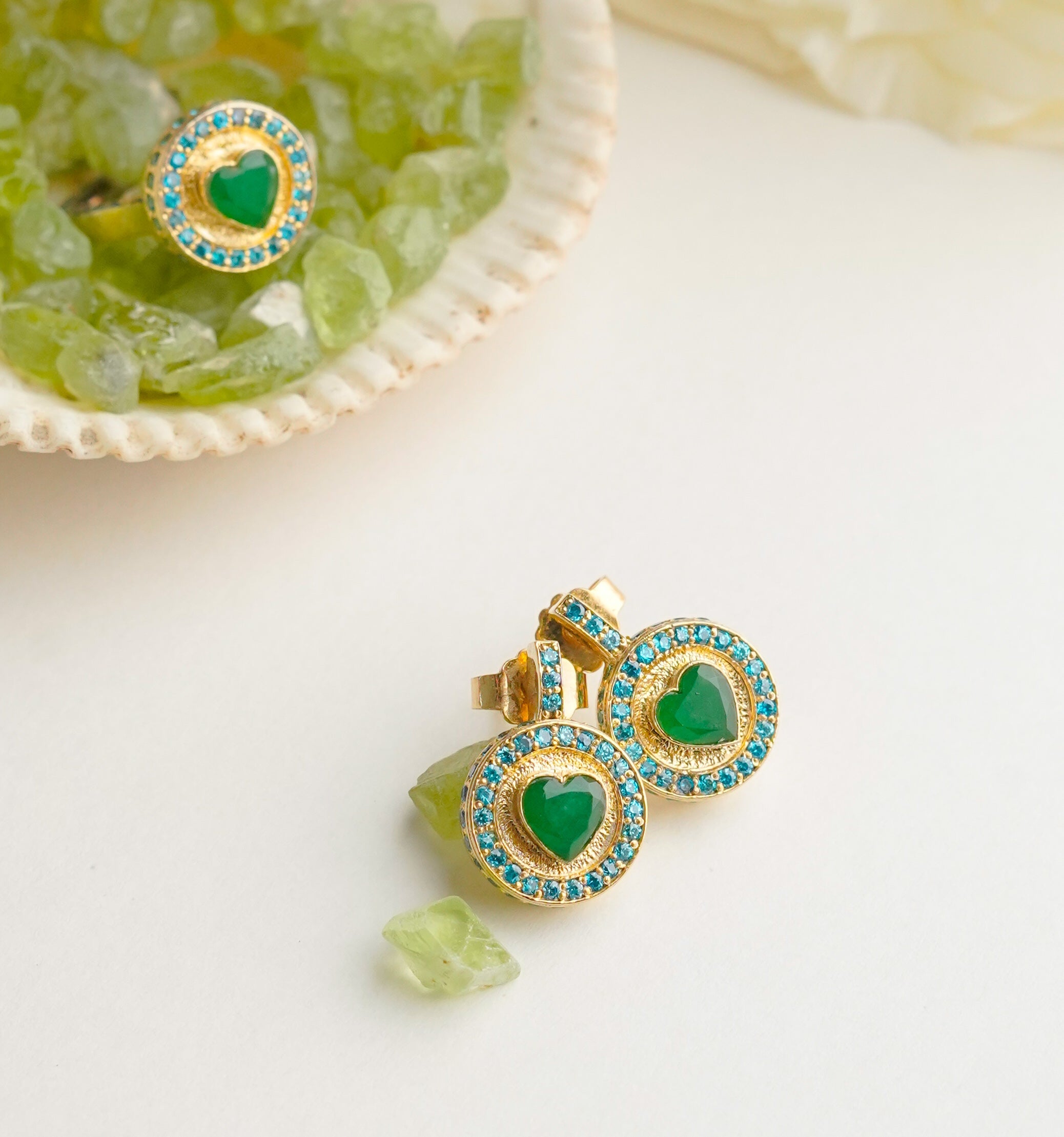 Elegant earrings featuring heart-shaped semi-precious gemstone charms, symbolizing growth, balance, and tranquility. Perfect for adding a refreshing and soothing touch to any outfit.